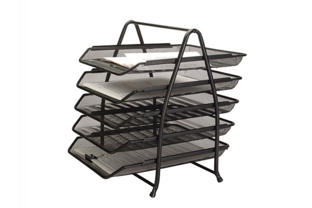 Лоток для паперів горизонтальний металева сітка чорний 5 відділень KF18474 Q-CONNECT