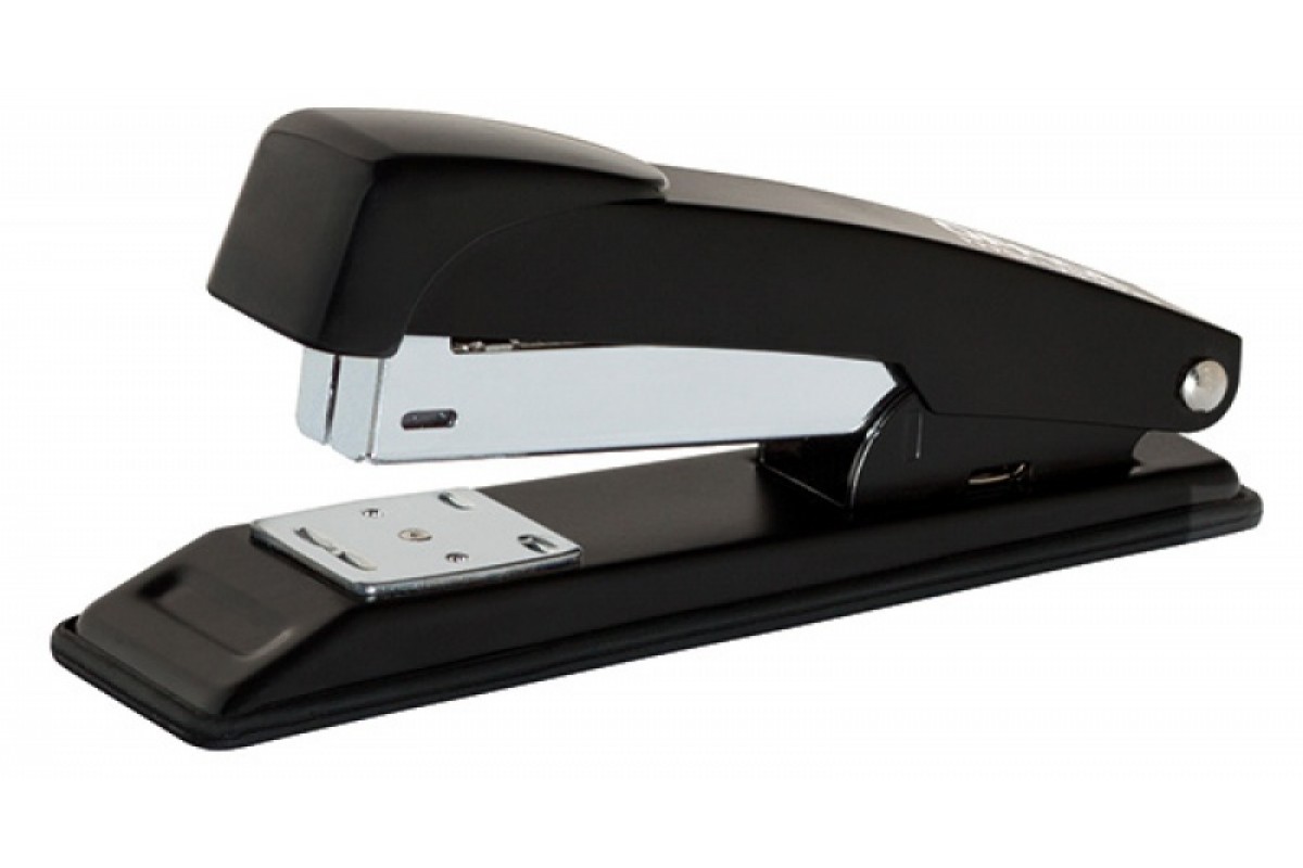 Металевий степлер №24-26/6, скріплює до 30 аркушів паперу. Корпус виготовлений з металу з пластиковою вставкою на важелі. Основа степлера - металева з пластиковою накладкою на підошві. Тип скріплення: закритий, відкритий, прямий. Скоба: № 24/6, № 26/6. Глибина закладки паперу: 60мм. Колір: чорний.