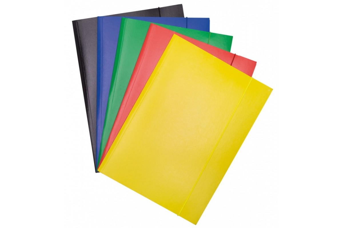 Виготовлена з картону 300 г/м2. Три клапани, покрита глянцевим друкарським лаком. Кругла вертикальна гумка у колір папки захищає вміст від випадіння. Упакована в білий перфорований лоток-пак. Формат: A4. Розмір: 232x320 мм. Різні кольори