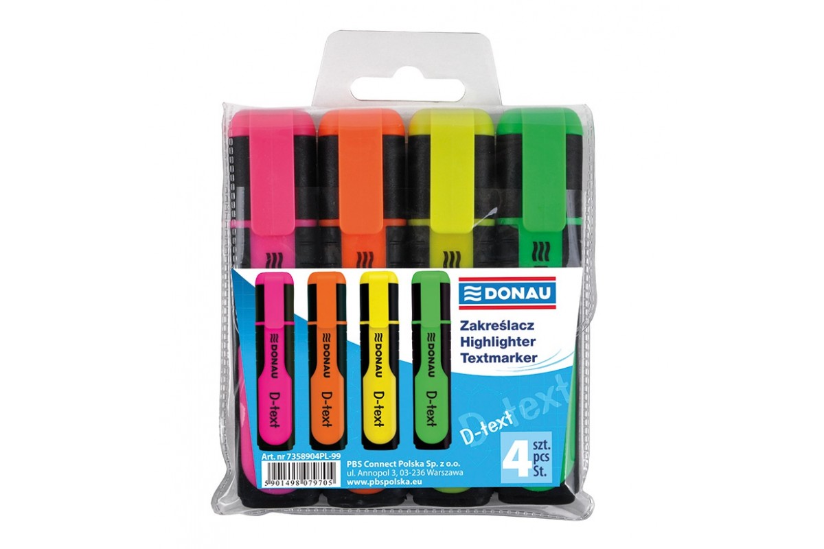 Набір маркерів текст. 4кольор. Donau флюор.7358904PL-99